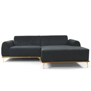 Sofá 3 Lugares Com Chaise Direito Para Sala Molino 230 Cm D02 Veludo Cinza C-317 -lyam Decor