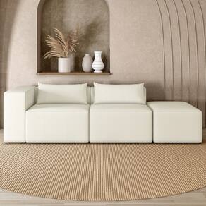 Com 298cm de largura, este sofá 3 lugares é pensado para quem busca conforto amplo, durabilidade e um toque contemporâneo - perfeito para reunir a família, receber amigos ou simplesmente relaxar com estilo. Além disso, o destaque fica por conta do puff integrado, que amplia as possibilidades de uso: apoio para os pés, banco extra ou até um assento casual para quem adora liberdade na decoração. Para completar, a estrutura robusta garante que esse sofá modular mantenha sua forma e suporte por anos, enquanto o revestimento premium oferece maciez e fácil manutenção - ideal para o dia a dia sem preocupações.