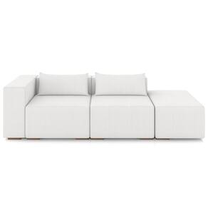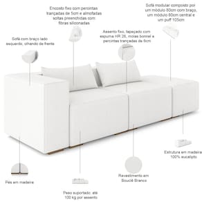 Sofá modular composto por um módulo 80cm com braço, um módulo 80cm central e um puff 105cm.