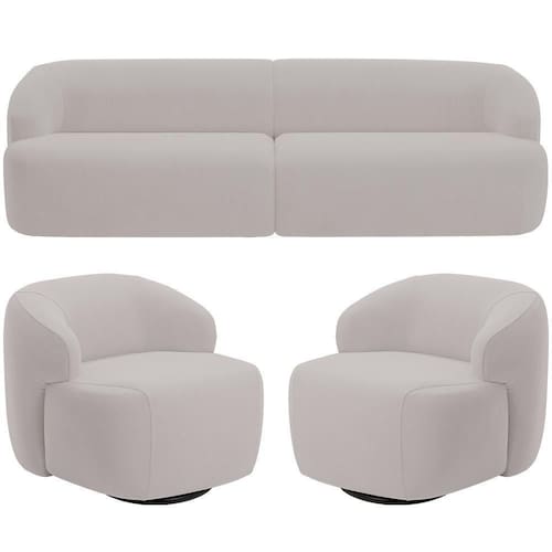 O Kit Sofá 3 Lugares Curvo Orgânico com 02 Poltronas Giratórias Para Sala Living 220cm Barolo - Lyam Decor, é a escolha perfeita para quem procura um design moderno para sua sala de estar ou living. Puro charme, esse sofá e poltrona orgânicos combinam perfeitamente com uma decoração moderna e elegante, já que a fluidez do design curvo harmoniza facilmente com qualquer ambiente. Já a qualidade alto-padrão fica por conta da tapeçaria feita com espuma de alta densidade, enquanto o revestimento em alta qualidade garante um toque macio e suave. Se você busca sofisticação e conforto, esse kit living é a opção ideal para completar o seu ambiente. Adicione ao seu carrinho e transforme o seu ambiente com esse estofado que será o centro das atenções!