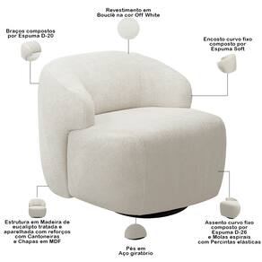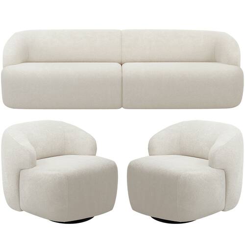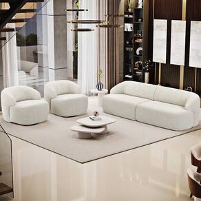 Sofá 3 Lugares Curvo Orgânico com 02 Poltronas Para Sala Living 220cm Barolo L06 Bouclê Off White - Lyam Decor