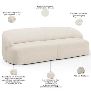 Altura: 78 cm | Color: Bege | ColorFamily: Bege | ColorSimple: Bege | ColorSupplier: Mescla | Cor: Mescla | Cor dos pés: -1 | Densidade da espuma do assento: D-26 | Desenho do tecido: Liso | Estilo: Moderno | Fabricante: Lyam Decor | Formato do sofá: Linear | Largura: 250 cm | Linha: Sala de Estar | Material: Estrutura em madeira de eucalipto tratada e aparelhada com reforços, cantoneiras e chapas em MDF. | Material de enchimento do encosto: Encosto curvo fixo composto por espuma soft. | Material do estofamento: Linho | MaterialFamily: Madeira ,Tecido | Mecanismo de abertura do produto: -1 | Model: Barolo | Orientação do Sofá: -1 | OriginCountry: | OriginState: PR | Peso: 62 kg | Peso máximo suportado: 120 kg | ProductContents: 01 Sofá | ProductHeight: 78 cm | ProductInstructions: Produto para uso em ambiente interno, nao devendo ficar exposto ao sol, calor e umidade excessivos. | ProductLength: 90 cm | ProductWarranty: 90 dias após o do produto | ProductWeight: 62 kg | ProductWidth: 250 cm | Profundidade: 90 cm | Quantidade de Caixas de embalagem: 1 | Requer montagem: Não | SizeDescription: Altura: 78 cm x Largura: 250 cm x Profundidade: 90 cm | SupplierSimpleName: Sofá 3 Lugares Curvo Orgânico Para Sala Living 250cm Barolo L06 Linho Mescla - Lyam Decor | Tipo de produto: Sofá | Unidades por kit: 1