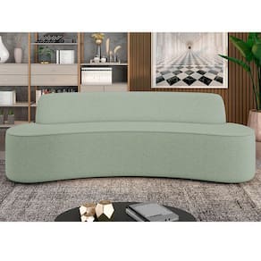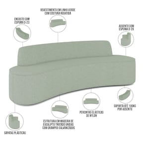 Sofá 3 Lugares Curvo Sala de Estar Living Cancún D02 Linho Verde 210 cm D-477 - Lyam Decor