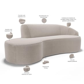 Sofá 3 Lugares Curvo Sala de Estar Living Firenze Direito D02 Bouclê Creme 210 cm B-54 - Lyam - Bege Médio