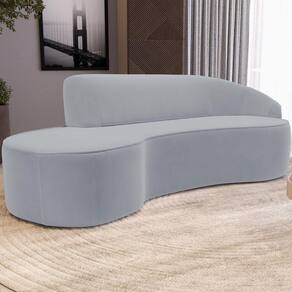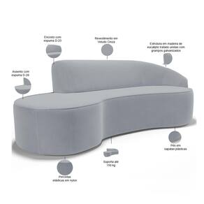 Sofá 3 Lugares Curvo Sala de Estar Living Firenze Direito D02 Veludo Cinza 180 cm C-317 - Lyam - Cinza Claro