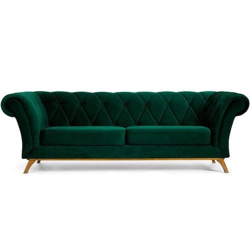 Sofá 3 Lugares Império 210 Cm Veludo Verde Musgo C-303