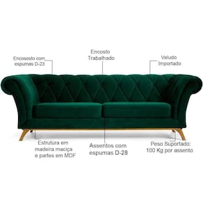 Sofá 3 Lugares Para Sala De Estar Império 210 Cm D02 Veludo Verde Musgo C-303 - Lyam Decor