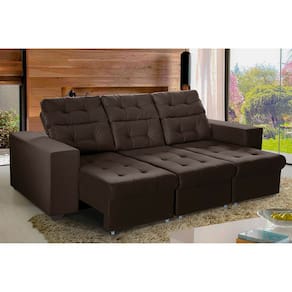 Sofá 3 Lugares Itália Plus 2 Metros, Retrátil Reclinável com 2 Puffs pés Palito. Sabe aquela sensação de felicidade e satisfação que você sente quando faz uma boa escolha?! Pois bem, essa é a sensação de comprar um sofá Itália Plus que possui um design moderno, acompanha 2 pufes elegantes que complementa o seu ambiente deixando ainda mais lindo e aconchegante. Ele possui encosto reclinável em cinco posições, proporcionando-lhe mais conforto na hora do descanso. E não para por aí: seu assento retrátil conta com espuma D28, transformando seu sofá em uma verdadeira cama para assistir seu filme preferido. Itens Inclusos 1 Sofá; 2 Pufes. Quantidade de Lugares: 3 Características: - Encosto Reclinável com 5 posições, almofadas fixas compostas de 100% fibra para maior conforto. - Assentos retráteis com percintas pneumáticas com feltro para proteger do atrito. - Braços com 25cm de largura e com espuma D28 e costuras duplas. - Fixação: Grampos galvanizados antiferrugem. - Estrutura de Madeira maciça 100% eucalipto de reflorestamento, produto ecologicamente correto. FABRICANTE: WS ESTOFADOS Medidas do sofá: Altura: 100cm Profundidade fechado: 110cm Profundidade aberto: 160cm Largura: 200cm Pé de tabaco:0,5 cm Rodas de silicone *Suporte até 120kg por assento *Módulos: 2 * Montagem Simples; *3 Meses de garantia. Informações importantes: – Os objetos que ambientam as fotos não acompanham o produto. – Tonalidade de cores pode sofrer variação conforme monitor visualizador. – Os tecidos podem sofrer alterações de tonalidades dependendo do lote de produção. – Verifique as dimensões do produto e certifique-se que o percurso que ele fará até o local de uso permite sua passagem. Quaisquer despesas ou danos no transporte até o local de uso ficam a cargo do cliente. “Em situação de escadaria ou Elevadores - Entregadores efetua apenas na portaria”. . . . . . Tag Você também pode Buscar por – Sofá, sofá reclinável, sofá retrátil, sofá grande, sofá luxo, sofá confortável, sofá para casa, sofá 2 Lugares, Sofá 4 lugares, sofá com Pillow Top, sofá para apartamento, sofá clean, sofá designer, sofá lugares, sofá Grande, sofá para filme.