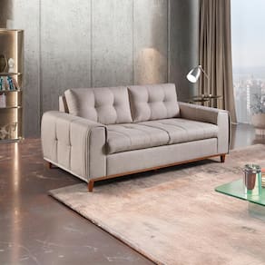 ESPECIFICAÇÕES TÉCNICA: - Material da Estrutura: Madeira de reflorestamento seca e imunizada; - Material do Assento: Molas Bonnel/Percinta elástica/Espuma D28; - Material do Encosto: Fibra siliconada; - Revestimento: Tecido Premium 100% Poliéster; - Almofada dos Assento: Fixas, com molas bonnel por assento, preenchido com espuma D28 revestida com manta siliconada; - Almofada do Encosto: Soltas preenchidas 100% com fibra siliconada; - Tipo de Encosto: Fixo; - Tipo de Assento: Fixo; - Tipo de pé: Fixo; - Material dos pés e da base: Madeira maciça com acabamento em verniz; - Possui Regulagem de Inclinação? Não; - Peso real suportado: 120kg; - Quantidade Lugares: 3 Lugares; - Garantia: 3 meses contra defeitos de fabricação; - Dimensões do Produto (LarguraXProfundidadeXAltura):180x92x92cm