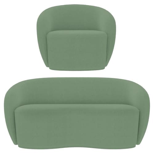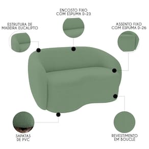 O Sofá 3 Lugares Living 180cm e 1 Poltrona Giratória Garbin K04 Bouclê Verde, da Mpozenato tem um Design Orgânico, combinando estética e funcionalidade com uma consciência ecológica.