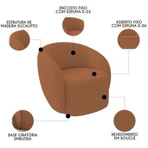 O Sofá 3 Lugares Living 180cm e 1 Poltrona Giratória Garbin Z08 Boucle Terracota, da Mpozenato tem um Design Orgânico, combinando estética e funcionalidade com uma consciência ecológica.