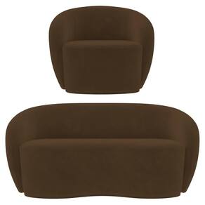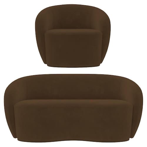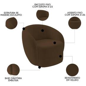 O Sofá 3 Lugares Living 180cm e 1 Poltrona Giratória Garbin Z08 Veludo Marrom, da Mpozenato tem um Design Orgânico, combinando estética e funcionalidade com uma consciência ecológica.