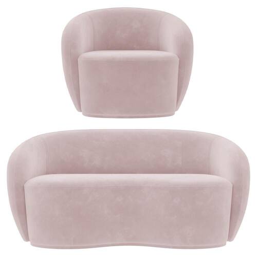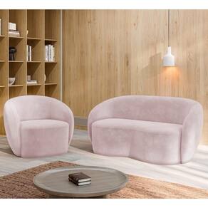 O Sofá 3 Lugares Living 180cm e 1 Poltrona Giratória Garbin Z08 Veludo Rosê, da Mpozenato tem um Design Orgânico, combinando estética e funcionalidade com uma consciência ecológica.