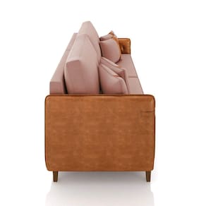 O Sofá 3 Lugares Living Valença é a escolha perfeita para quem busca um equilíbrio entre conforto e elegância em um espaço compacto. Com medidas de 212 cm, este sofá se destaca pelo design sofisticado e pela qualidade de seus materiais. O sofá é revestido em tecido sintético PU na cor Nozes, com um acabamento em Veludo Rosê que proporciona um toque de sofisticação e aconchego. O sofá é fabricado com madeira de reflorestamento tratada, especificamente eucalipto. Já os pés são de madeira na cor castanho, com acabamento elegante que complementa o visual geral do móvel. O sofá possui assento e encosto fixos, garantindo uma estrutura sólida e sem movimento. A espuma utilizada é a D-28, conhecida por sua durabilidade e conforto. O assento é fixo, que garante um suporte firme e duradouro. Ele é equipado com molas espirais e percintas elásticas, além de uma manta acrílica que oferece um conforto extra. Este assento é projetado para suportar até 150 kg, garantindo robustez e estabilidade. O encosto é fixo e conta com percintas elásticas que sustentam almofadas soltas preenchidas com 100% fibra siliconada, proporcionando um apoio macio e confortável para as costas. Além do mais, as almofadas do encosto do sofá são adornadas com uma fita em sintético PU que segue a mesma tonalidade do revestimento, na cor Nozes. Este detalhe não apenas realça o design do sofá, mas também oferece uma finalização elegante e refinada. Os braços do sofá são preenchidos com espuma D-23, o que proporciona um suporte confortável e equilibrado. A estrutura dos braços complementa o design do sofá, oferecendo uma superfície acolhedora para descansar os braços. Para garantir a durabilidade e resistência, os pontos de tensão do sofá são fixados com grampos galvanizados antiferrugem ou aparafs, garantindo que o móvel mantenha sua integridade ao longo do tempo. A combinação desses materiais assegura um suporte ergonômico, ideal para relaxar após um longo dia. Invista no conforto e na sofisticação que você merece, o Sofá Valença está esperando por você!