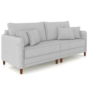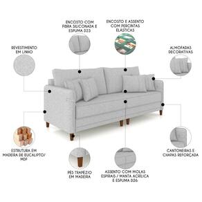 Sofá 3 Lugares Living 232cm Pé Madeira Zoe Linho Cinza Claro Z08 - Mpozenato