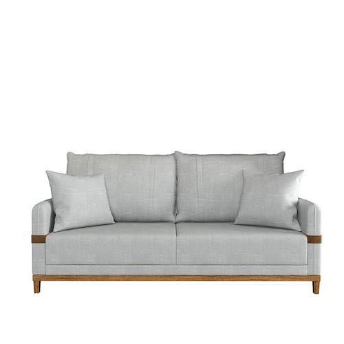 MODELO: Sofá 3 Lugares 2m Living Com Almofadas Pés Madeira Linho Kazu