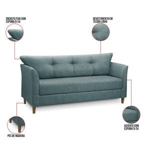 O Sofá 3 Lugares Leblon é um móvel que combina formas artísticas, conforto e durabilidade. Ele tem um design contemporâneo que alia praticidade a uma estética sofisticada criando um espaço acolhedor e relaxante. Além das suas linhas suaves, ele contém 5 pés em madeira e um revestimento em tecido Linho Azul que cria uma conexão entre a peça e o ambiente. Pode ser utilizado em sala de estar, recepções, escritórios, lojas e espaços comerciais, ou qualquer outro espaço que você queira decorar com estilo e bom gosto. Ele tem uma estrutura em madeira reflorestada e MDF, que garante a resistência e a sustentabilidade do produto. Ele suporta até 180 kg de peso, podendo ser utilizada por pessoas de diferentes biotipos. Inclui almofada solta do encosto em fibra acrílica, oferecendo versatilidade para diferentes usos e necessidades. Ele tem um acabamento reforçado e espuma de qualidade D24, que oferece maciez e aconchego. Ele apresenta detalhes de costura refinados resultando em um acabamento impecável conferindo muito mais valor e elegância ao produto. Ele é fácil de transportar, pois tem um peso leve e um tamanho compacto. O Sofá Leblon é uma peça que vai fazer a diferença na sua decoração e no seu bem-estar.