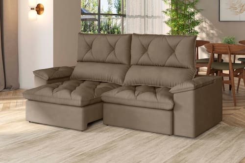 Com 2,10 metros de largura, este sofá acomoda confortavelmente 3 pessoas, suportando até 110 kg por assento. É o móvel funcional que faltava para otimizar seu espaço com elegância e qualidade superior.
