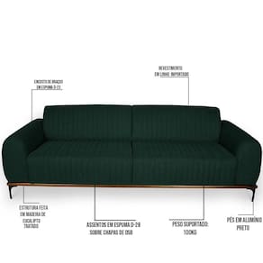 Descrição do produto: O Sofá 3 Lugares Molino é o que você precisa para inovar o seu ambiente com elegância! Irá tornar a decoração do ambiente marcante e pode ser utilizada em sala de estar, escritório, recepção ou hall de entrada. Adquira agora o seu!