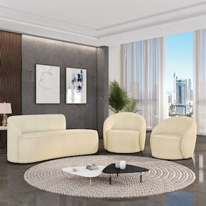 O Kit Sofá 3 Lugares Orgânico 180cm Morgan e 2 Poltronas Lua é um verdadeiro convite ao relaxamento! Ele possui um design orgânico que remete às formas encontradas na natureza que além de se moldar ao corpo humano, evoca uma sensação de calma e equilíbrio criando um espaço acolhedor e relaxante. O revestimento desse maravilhoso conjunto conta com um tecido extremamente elegante no Bouclê Bege, suportando em média até 240 kg de peso, podendo ser utilizado por pessoas de diferentes biotipos. A Poltrona Lua contém uma simetria artística e curvas suaves, ela contém uma Base Giratória com giro em 360 graus e uma estrutura em madeira de reflorestamento eucalipto, que garante a resistência e a sustentabilidade do produto. Ela tem um acabamento reforçado e espuma de qualidade D23, que oferece maciez e conforto. Ela contém detalhes de costura no encosto e um assento cilíndrico arredondado resultando em um acabamento perfeito conferindo muito mais valor e personalizado ao produto, oferecendo maior liberdade de movimento ao cliente. O Sofá Morgan por sua vez é uma combinação perfeita de conforto e estilo. Com uma estrutura robusta de madeira de eucalipto e MDF, este sofá garante durabilidade e resistência. Os assentos e encostos são fixos, o encosto é preenchido com espuma D-20, proporcionando suporte ideal para suas costas, enquanto o assento com espuma D-23 oferece uma experiência de assento firme e aconchegante. Seu formato curvo e sem braços traz um toque de modernidade, permitindo que o sofá se encaixe harmoniosamente em diversos estilos de decoração, desde o minimalista até o mais ousado. As sapatas plásticas são pequenas proteções colocadas na base dos pés do sofá para evitar que eles risquem ou danifiquem o chão. Além de proteger o piso, essas sapatas ajudam a distribuir o peso do sofá de maneira mais uniforme. Esse lindo conjunto pode ser utilizado em salas de estar, recepções, escritórios, lojas, espaços comerciais, ou qualquer outro espaço que você queira decorar com estilo e bom gosto. O kit Sofá Morgan e 2 Poltronas Lua é um produto que vai fazer a diferença na sua decoração e no seu bem-estar. Ele vai trazer charme, conforto e durabilidade para o seu ambiente. Corra e garanta o seu agora mesmo!