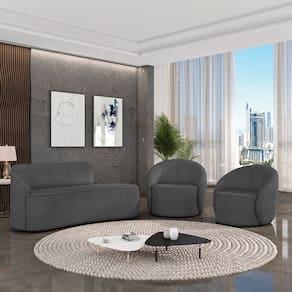 O Kit Sofá 3 Lugares Orgânico 180cm Morgan e 2 Poltronas Lua é um verdadeiro convite ao relaxamento! Ele possui um design orgânico que remete às formas encontradas na natureza que além de se moldar ao corpo humano, evoca uma sensação de calma e equilíbrio criando um espaço acolhedor e relaxante. O revestimento desse maravilhoso conjunto conta com um tecido extremamente elegante no Bouclê Grafite, suportando em média até 240 kg de peso, podendo ser utilizado por pessoas de diferentes biotipos. A Poltrona Lua contém uma simetria artística e curvas suaves, ela contém uma Base Giratória com giro em 360 graus e uma estrutura em madeira de reflorestamento eucalipto, que garante a resistência e a sustentabilidade do produto. Ela tem um acabamento reforçado e espuma de qualidade D23, que oferece maciez e conforto. Ela contém detalhes de costura no encosto e um assento cilíndrico arredondado resultando em um acabamento perfeito conferindo muito mais valor e personalizado ao produto, oferecendo maior liberdade de movimento ao cliente. O Sofá Morgan por sua vez é uma combinação perfeita de conforto e estilo. Com uma estrutura robusta de madeira de eucalipto e MDF, este sofá garante durabilidade e resistência. Os assentos e encostos são fixos, o encosto é preenchido com espuma D-20, proporcionando suporte ideal para suas costas, enquanto o assento com espuma D-23 oferece uma experiência de assento firme e aconchegante. Seu formato curvo e sem braços traz um toque de modernidade, permitindo que o sofá se encaixe harmoniosamente em diversos estilos de decoração, desde o minimalista até o mais ousado. As sapatas plásticas são pequenas proteções colocadas na base dos pés do sofá para evitar que eles risquem ou danifiquem o chão. Além de proteger o piso, essas sapatas ajudam a distribuir o peso do sofá de maneira mais uniforme. Esse lindo conjunto pode ser utilizado em salas de estar, recepções, escritórios, lojas, espaços comerciais, ou qualquer outro espaço que você queira decorar com estilo e bom gosto. O kit Sofá Morgan e 2 Poltronas Lua é um produto que vai fazer a diferença na sua decoração e no seu bem-estar. Ele vai trazer charme, conforto e durabilidade para o seu ambiente. Corra e garanta o seu agora mesmo!