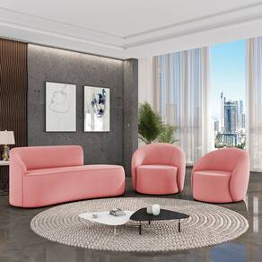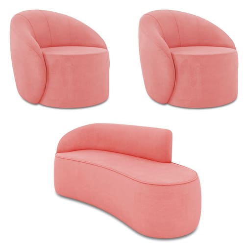 O Kit Sofá 3 Lugares Orgânico 180cm Morgan e 2 Poltronas Lua é um verdadeiro convite ao relaxamento! Ele possui um design orgânico que remete às formas encontradas na natureza que além de se moldar ao corpo humano, evoca uma sensação de calma e equilíbrio criando um espaço acolhedor e relaxante. O revestimento desse maravilhoso conjunto conta com um tecido extremamente elegante no Suede Rosê, suportando em média até 240 kg de peso, podendo ser utilizado por pessoas de diferentes biotipos. A Poltrona Lua contém uma simetria artística e curvas suaves, ela contém uma Base Giratória com giro em 360 graus e uma estrutura em madeira de reflorestamento eucalipto, que garante a resistência e a sustentabilidade do produto. Ela tem um acabamento reforçado e espuma de qualidade D23, que oferece maciez e conforto. Ela contém detalhes de costura no encosto e um assento cilíndrico arredondado resultando em um acabamento perfeito conferindo muito mais valor e personalizado ao produto, oferecendo maior liberdade de movimento ao cliente. O Sofá Morgan por sua vez é uma combinação perfeita de conforto e estilo. Com uma estrutura robusta de madeira de eucalipto e MDF, este sofá garante durabilidade e resistência. Os assentos e encostos são fixos, o encosto é preenchido com espuma D-20, proporcionando suporte ideal para suas costas, enquanto o assento com espuma D-23 oferece uma experiência de assento firme e aconchegante. Seu formato curvo e sem braços traz um toque de modernidade, permitindo que o sofá se encaixe harmoniosamente em diversos estilos de decoração, desde o minimalista até o mais ousado. As sapatas plásticas são pequenas proteções colocadas na base dos pés do sofá para evitar que eles risquem ou danifiquem o chão. Além de proteger o piso, essas sapatas ajudam a distribuir o peso do sofá de maneira mais uniforme. Esse lindo conjunto pode ser utilizado em salas de estar, recepções, escritórios, lojas, espaços comerciais, ou qualquer outro espaço que você queira decorar com estilo e bom gosto. O kit Sofá Morgan e 2 Poltronas Lua é um produto que vai fazer a diferença na sua decoração e no seu bem-estar. Ele vai trazer charme, conforto e durabilidade para o seu ambiente. Corra e garanta o seu agora mesmo!