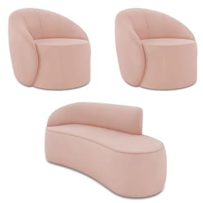 O Kit Sofá 2 Lugares Orgânico 180cm Morgan e 2 Poltronas Lua é um verdadeiro convite ao relaxamento! Ele possui um design orgânico que remete às formas encontradas na natureza que além de se moldar ao corpo humano, evoca uma sensação de calma e equilíbrio criando um espaço acolhedor e relaxante. O revestimento desse maravilhoso conjunto conta com um tecido extremamente elegante no Veludo Rosê, suportando em média até 240 kg de peso, podendo ser utilizado por pessoas de diferentes biotipos. A Poltrona Lua contém uma simetria artística e curvas suaves, ela contém uma Base Giratória com giro em 360 graus e uma estrutura em madeira de reflorestamento eucalipto, que garante a resistência e a sustentabilidade do produto. Ela tem um acabamento reforçado e espuma de qualidade D23, que oferece maciez e conforto. Ela contém detalhes de costura no encosto e um assento cilíndrico arredondado resultando em um acabamento perfeito conferindo muito mais valor e personalizado ao produto, oferecendo maior liberdade de movimento ao cliente. O Sofá Morgan por sua vez é uma combinação perfeita de conforto e estilo. Com uma estrutura robusta de madeira de eucalipto e MDF, este sofá garante durabilidade e resistência. Os assentos e encostos são fixos, o encosto é preenchido com espuma D-20, proporcionando suporte ideal para suas costas, enquanto o assento com espuma D-23 oferece uma experiência de assento firme e aconchegante. Seu formato curvo e sem braços traz um toque de modernidade, permitindo que o sofá se encaixe harmoniosamente em diversos estilos de decoração, desde o minimalista até o mais ousado. As sapatas plásticas são pequenas proteções colocadas na base dos pés do sofá para evitar que eles risquem ou danifiquem o chão. Além de proteger o piso, essas sapatas ajudam a distribuir o peso do sofá de maneira mais uniforme. Esse lindo conjunto pode ser utilizado em salas de estar, recepções, escritórios, lojas, espaços comerciais, ou qualquer outro espaço que você queira decorar com estilo e bom gosto. O kit Sofá Morgan e 2 Poltronas Lua é um produto que vai fazer a diferença na sua decoração e no seu bem-estar. Ele vai trazer charme, conforto e durabilidade para o seu ambiente. Corra e garanta a sua agora mesmo!