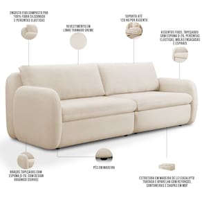 Com capacidade para três lugares, esse sofá living exala uma elegância minimalista, com suas linhas curvas e suaves, que convidam ao relaxamento e à convivência. A tapeçaria de alta densidade desse sofá 3 lugares transforma qualquer espaço em um refúgio de tranquilidade e bem-estar. Com ele, você terá o cenário ideal para momentos especiais, desde reuniões animadas com amigos até aquelas horas de tranquilidade com um bom livro. Em outras palavras, o Sofá Orgânico Eliot transcende a função de estofado, tornando-se o coração da sua sala de estar, onde cada momento é uma promessa de conforto e boas memórias.