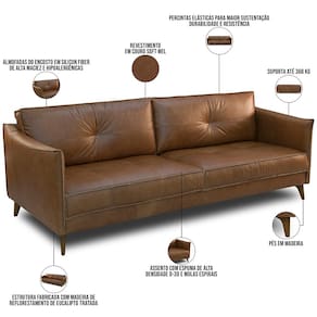 Com tapeçaria de alta densidade e espuma D-30, esse sofá de couro oferece um conforto inigualável, adaptando-se perfeitamente ao corpo e proporcionando uma experiência de relaxamento superior, principalmente pelas molas espirais, que garantem uma excelente absorção de impactos, tornando cada momento uma verdadeira fuga para o conforto. Além disso, o design clássico traz sofisticação e charme para qualquer ambiente, seja para a sala de estar, living, recepção e até mesmo escritório. Em outras palavras, é um sofá 3 lugares ideal para quem busca estilo e funcionalidade em uma única peça. Transforme hoje seu living em um verdadeiro oásis de tranquilidade e aconchego.