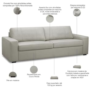 MaterialFamily: Eucalipto, Espuma | Profundidade: 92 cm | Cor: Pérola | Altura: 88 cm | Color: Pérola | ColorFamily: Pérola | ColorSimple: Pérola | ColorSupplier: Pérola | Estilo: Moderno | Fabricante: Lyam Decor | Largura: 205 cm | Material: Madeira de Eucalipto, Espuma D-26 | OriginState: PR | ProductContents: 01 Sofá | SupplierSimpleName: Sofá 3 Lugares Para Sala de Estar Living 205cm Aurora L06 Couro Pérola - Lyam Decor | OriginCountry: | ProductLength: 92 cm