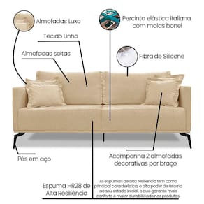O Sofá 3 Lugares Rafaela é uma mobília que combina elegância, conforto e durabilidade. Ele tem um design moderno e sofisticado, com pés em aço carbono, e revestimento em tecido Linho Dourado, que harmonizam com qualquer ambiente. Ele é ideal para sala de estar, recepções ou qualquer outro espaço que você queira decorar com estilo e bom gosto. Ele tem uma estrutura em madeira de reflorestamento eucalipto, que garante a resistência e a sustentabilidade do produto. Com medidas de 200 cm ele suporta até 160 Kg de peso, podendo ser utilizado por pessoas de diferentes biotipos. Ele tem um acabamento reforçado com espuma de qualidade no encosto D23 e plumante em silicone, que oferece maciez e aconchego. Acompanha Almofadas soltas em fibra de silicone. Ele tem assento Fixo com inúmeras elásticas italiana, molas bonnel e espuma HR 28 e plumante em silicone, que proporcionam flexibilidade e conforto. Tem pés em aço carbono, alt.18 cm, cor preto, que protegem o produto contra corrosão e desgaste. O sofá Rafaela é um produto de alta qualidade, beleza e funcionalidade. Ele é fácil de transportar, pois tem um peso leve e um tamanho compacto. O sofá Rafaela é um produto que vai fazer a diferença na sua decoração e no seu bem-estar. Ela vai trazer charme, conforto e durabilidade para o seu ambiente. Aproveite essa oferta e leve para casa um sofá de qualidade por um preço incrível. Essa é a sua chance de ter um sofá maravilhoso por um preço imperdível. Corra e garanta o seu antes que acabe o estoque.