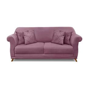 Sofá 3 Lugares Pé De Madeira Julieta 200 Cm Veludo S04 - D`rossi Cor Vinho - Blush