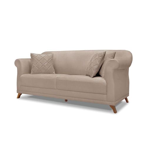 O Sofá 3 Lugares Julieta é uma mobília que combina elegância, conforto e durabilidade. Ele tem um design moderno e sofisticado, com pés em madeira maciça na cor mel e revestimento em tecido Linho Rústico Areia, que harmonizam com qualquer ambiente. Ele é ideal para sala de estar, recepções ou qualquer outro espaço que você queira decorar com estilo e bom gosto. Ele tem uma estrutura em madeira de reflorestamento eucalipto, que garante a resistência e a sustentabilidade do produto. Com medidas de 200 cm ele suporta até 160 kg de peso, podendo ser utilizado por pessoas de diferentes biotipos. Ele tem um acabamento reforçado com espuma de qualidade no encosto D23 e plumante em silicone, que oferece maciez e aconchego. Acompanha 2 almofadas decorativas ( Enchimento fibra de silicone) bordadas em matelassê por braço. Ele tem assento Fixo com percintas elásticas italiana, espuma HR 28 e plumante em silicone, que proporcionam flexibilidade e conforto. Tem pés em madeira maciça com altura de 12 cm, que protegem o produto contra corrosão e desgaste. O sofá Julieta é um produto de alta qualidade, beleza e funcionalidade. Ele é fácil de transportar, pois tem um peso leve e um tamanho compacto. O sofá Julieta é um produto que vai fazer a diferença na sua decoração e no seu bem-estar. Ela vai trazer charme, conforto e durabilidade para o seu ambiente. Aproveite essa oferta e leve para casa um sofá de qualidade por um preço incrível. Essa é a sua chance de ter um sofá maravilhoso por um preço imperdível. Corra e garanta o seu antes que acabe o estoque!