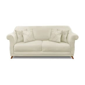 Sofá 3 Lugares Pé De Madeira Julieta 220 Cm Veludo S04 - D'rossi Cor Bege