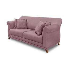 Sofá 3 Lugares Pé De Madeira Julieta 220 Cm Veludo S04 - D`rossi Cor Lilás - Blush