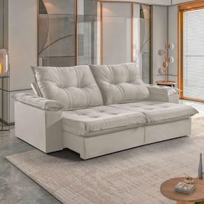 Sofá 3 Lugares Retrátil 230cm Pillow Top Reclinável Creme