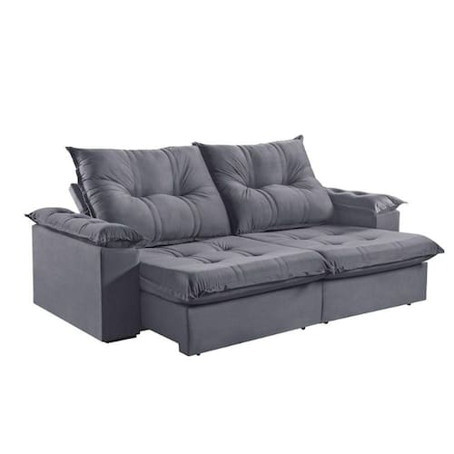 Sofá 3 Lugares Retrátil 230cm Pillow Top Reclinável Grafite
