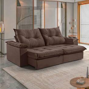 Sofá 3 Lugares Retrátil 230cm Pillow Top Reclinável Marrom