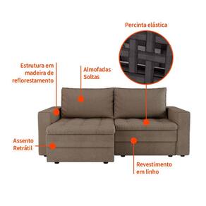 O Sofá Berna possui estrutura em madeira eucalipto 25 mm, enchimento do encosto e plumante siliconado e flocos de espuma, enchimento do assento em espuma D23, percintas elásticas, pés de plástico e revestimento em linhoVendido e entregue por MOBLY COMERCIO VAREJISTA LTDA.