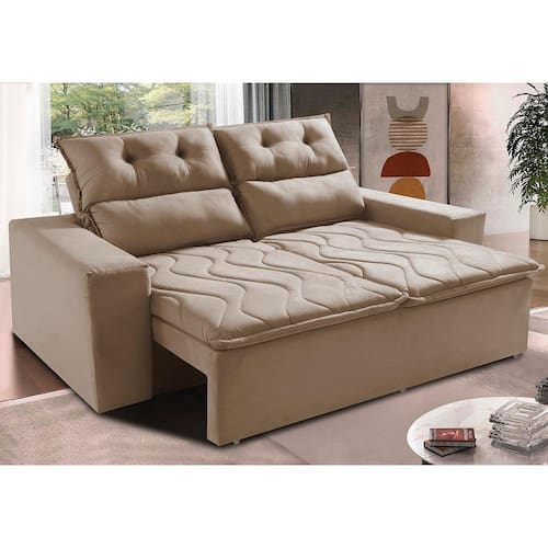 Sofá 3 Lugares Retrátil e Reclinável 1,80m Cama inBox Smal. com bordado pantográfico Suede - Bege