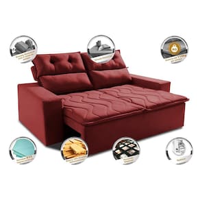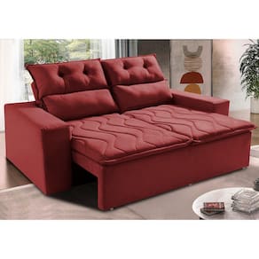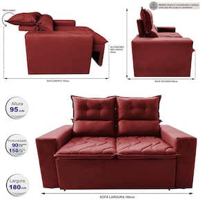 Sofá 3 Lugares Retrátil e Reclinável 1,80m Cama inBox Smal. com bordado pantográfico Suede - Vermelho