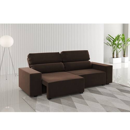 Sofá 3 Lugares Retratil e Reclinável 200cm Veludo Gold Viero Móveis - Marrom Chocolate