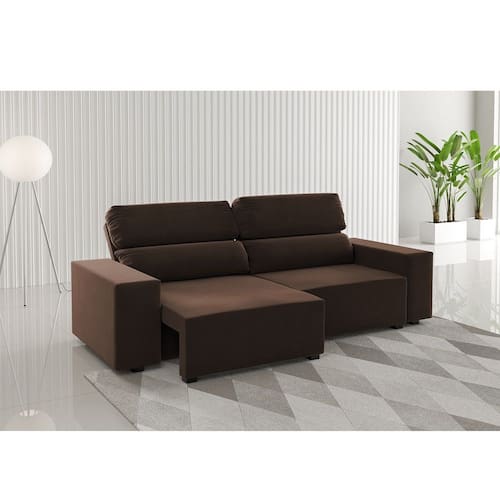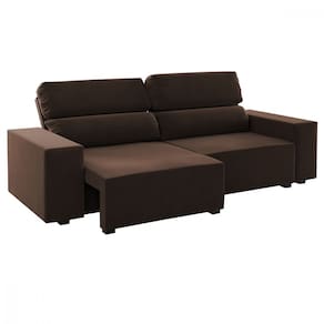 Características: Estrutura em Madeira de Eucalipto 3 Lugares Encosto 100 fibra siliconada Possui percinta no assento Encostos reclináveis em 5 posições Assentos retráteis D23 convencional Suporta até 180 kg Tecido em Veludo Possui 9 pés de plástico