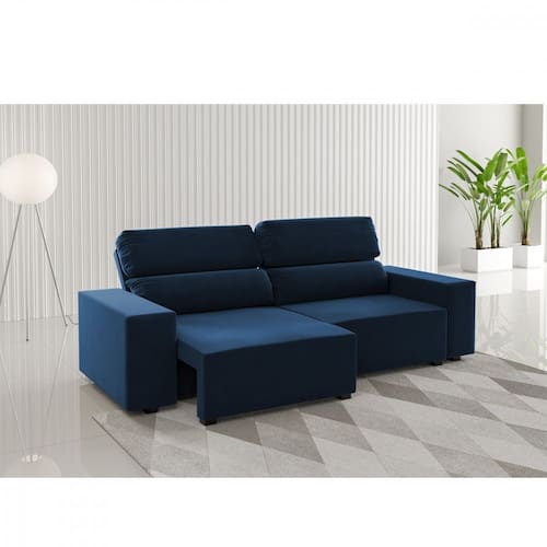 Características: Estrutura em Madeira de Eucalipto 3 Lugares Encosto 100 fibra siliconada Possui percinta no assento Encostos reclináveis em 5 posições Assentos retráteis D23 convencional Suporta até 180 kg Tecido em Veludo Possui 9 pés de plástico