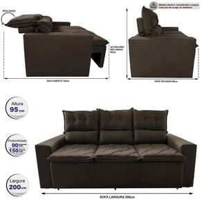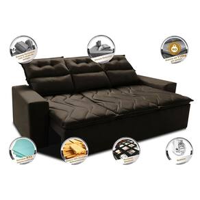 Sofá 3 Lugares Retrátil e Reclinável 2,00m Cama inBox Smal. com bordado pantográfico Suede - Marrom
