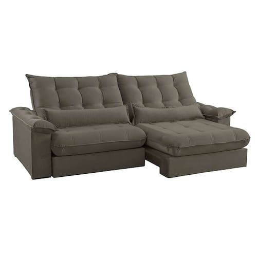 sofá 3 lugares retrátil e reclinável aruba veludo cinza 230 cm