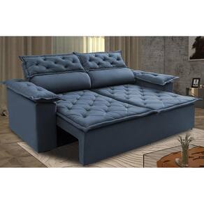 Sofá 3 Lugares Retrátil E Reclinável Cama Inbox Compact 1,80m Velusoft Azul