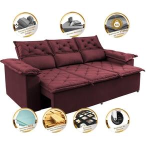 Sofá 3 Lugares Retrátil E Reclinável Cama Inbox Compact 2,00m Velusoft Vinho