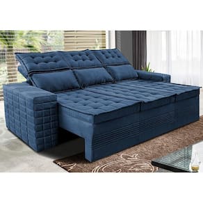 Sofá 3 Lugares Retrátil E Reclinável Cama Inbox Senses 2,00m Velusoft Azul
