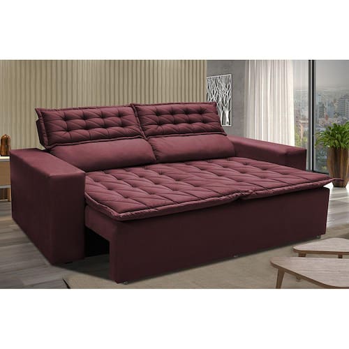 Sofá 3 Lugares Retrátil e Reclinável Cama inBox Slim 1,80m Velusoft Vinho